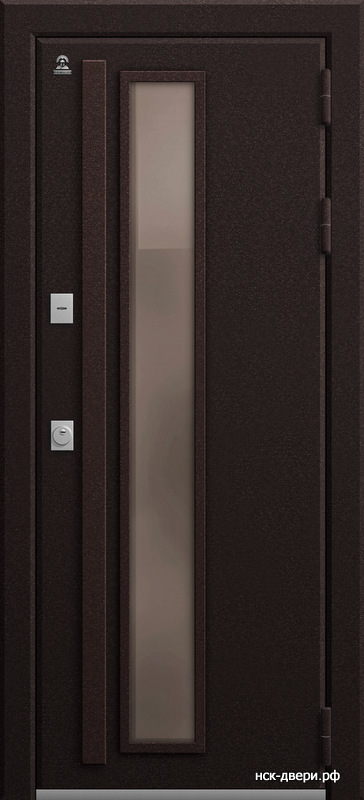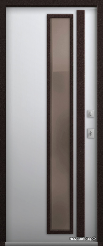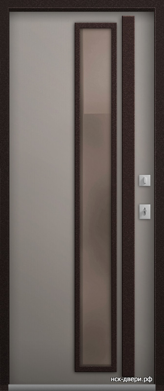 Уличная дверь Т-14 изготовлена с применением запатентованной (патент №191195) технологии «терморазрыв». Четырехкамерный профиль разделяет короб и полотно,